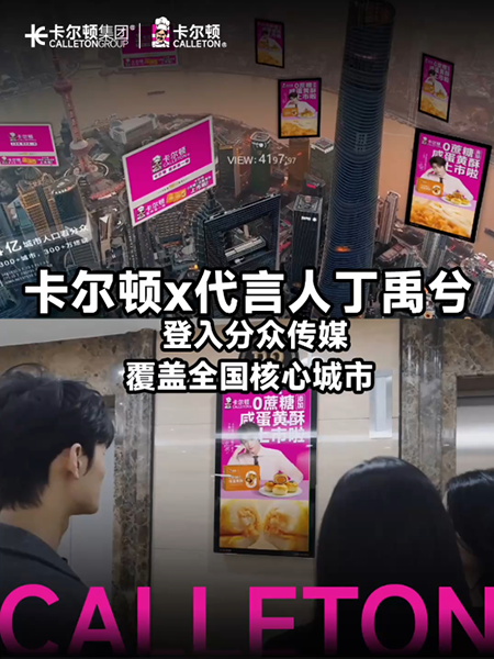 卡爾頓攜手品牌代言人丁禹兮霸屏分眾電梯廣告! 卡爾頓攜手品牌代言人丁禹兮 ??登陸分眾傳媒電梯廣告 ??布局北京、上海、江蘇、浙江、長(zhǎng)沙、廈門(mén)、成都、廣州等80城市 GET代言人同款卡爾頓蛋皮吐司,和#卡爾頓品牌代言人丁禹兮 一起開(kāi)啟烘焙幸福之旅吧~ #卡爾頓營(yíng)養(yǎng)美一頓#卡爾頓承包電梯 #卡爾頓面包